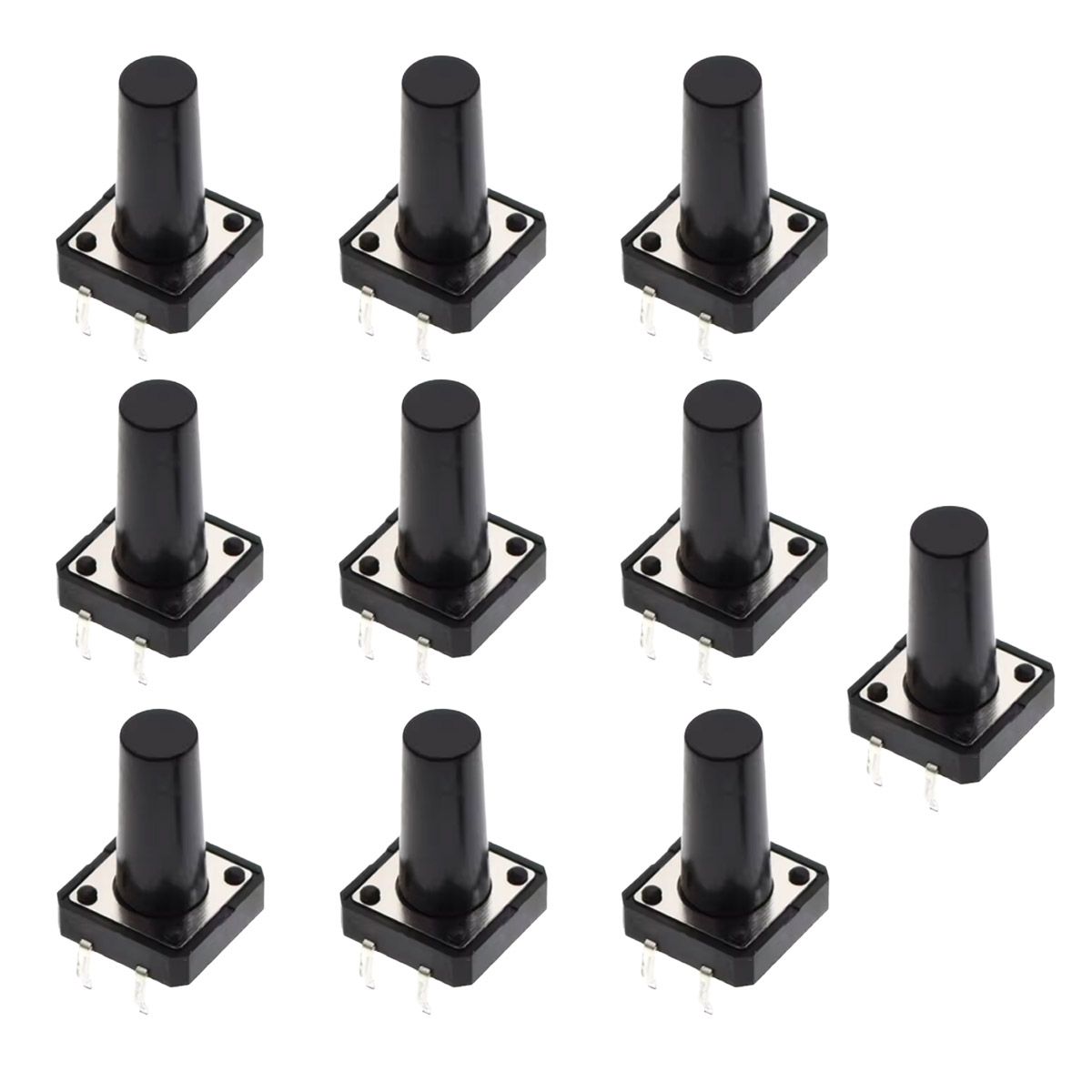 10x Taster 12x12x18mm THT – Druckknopf-Microtaster für Breadboard und Platinen