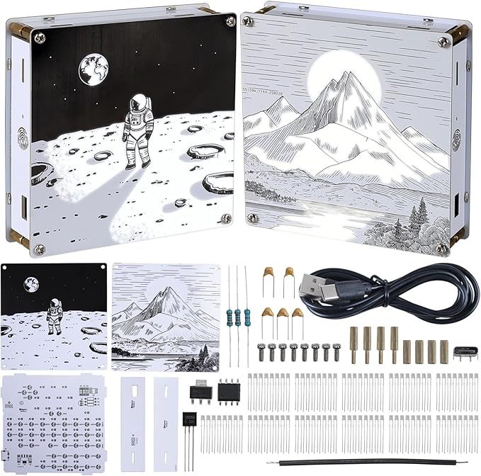Bausatz Doppelseitige PCB-Lampe mit Dimmfunktion „Astronaut & Berge“
