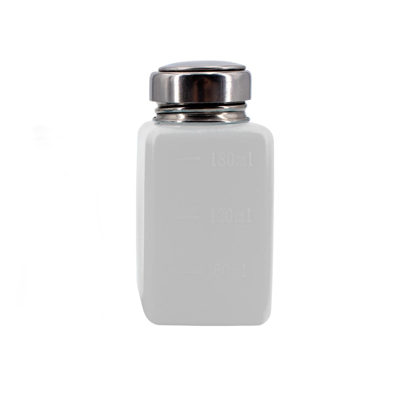 Der weiße Lösungsmittelspender mit 180 ml Fassungsvermögen eignet sich hervorragend für das saubere Dosieren von Alkohol, Aceton, Reinigern oder Desinfektionsflüssigkeiten. Der integrierte Druckmechanismus ermöglicht eine einhändige Entnahme – ideal beim Arbeiten mit Tüchern, Wattestäbchen oder Pinseln.