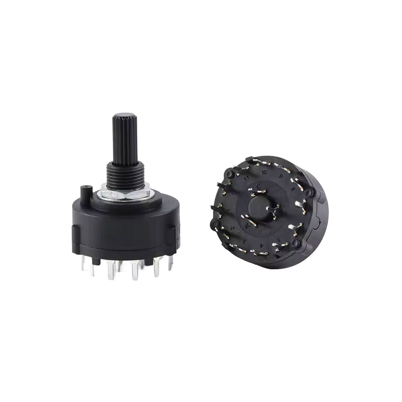 Der Drehschalter RS26 in 3-poliger Ausführung mit 4 Positionen eignet sich ideal für elektronische Steuerungen, Messgeräte und vielseitige DIY-Anwendungen. Durch die Single-Deck-Bauweise lassen sich mehrere Schaltkreise gleichzeitig und zuverlässig steuern. Der 20 mm lange Griff sorgt für eine komfortable und präzise Bedienung.