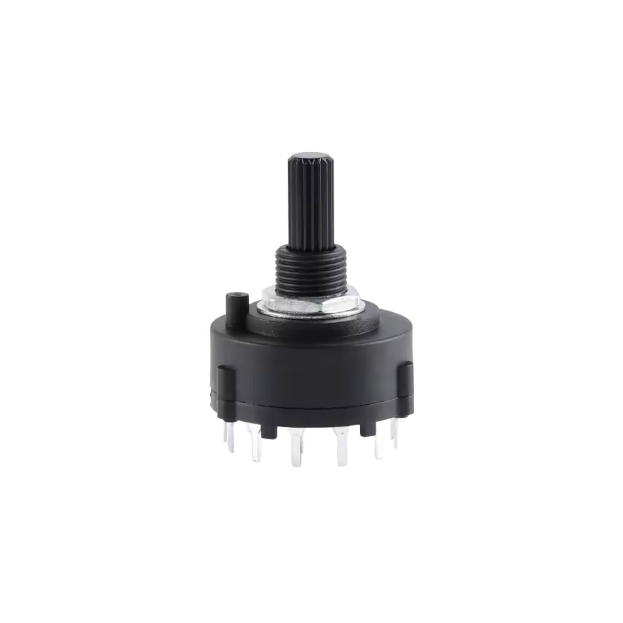 Dank der kompakten Abmessungen kann der Drehschalter einfach in Frontplatten oder Gehäuse eingebaut werden. Er ist eine zuverlässige Lösung für Anwendungen, bei denen mehrere Schaltzustände sicher und klar gewählt werden müssen.