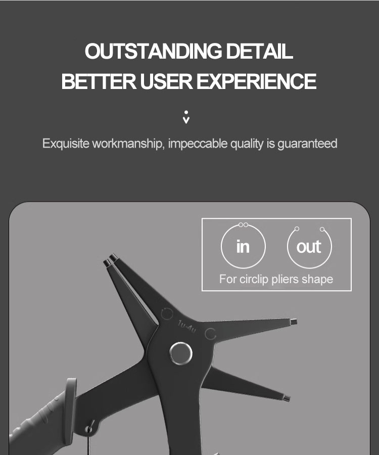 Diese professionelle 2-in-1 Sprengringzange ist das perfekte Werkzeug für den schnellen Wechsel und die präzise Montage von Innen- und Außensicherungsringen – ideal für Heimwerker, Maker, Maschinenbauer und Werkstätten.