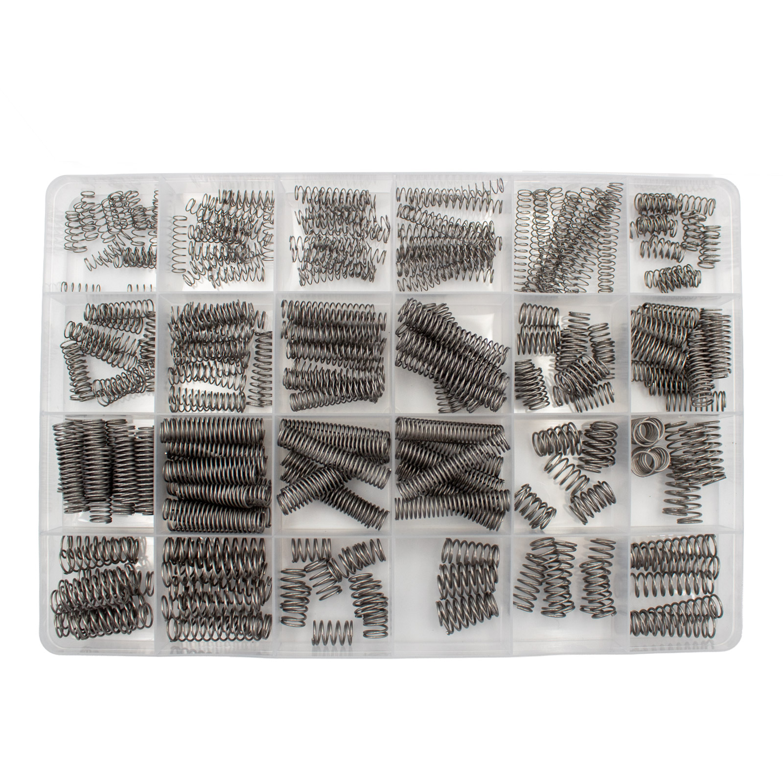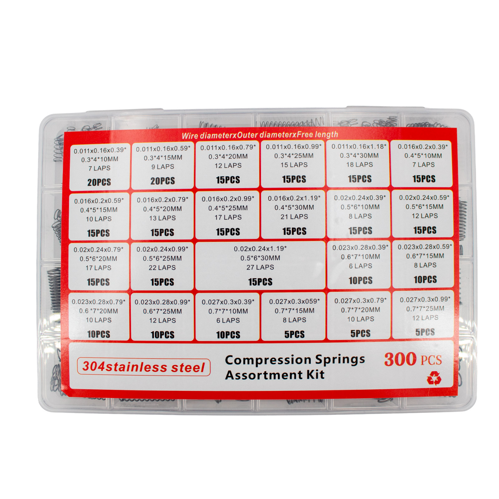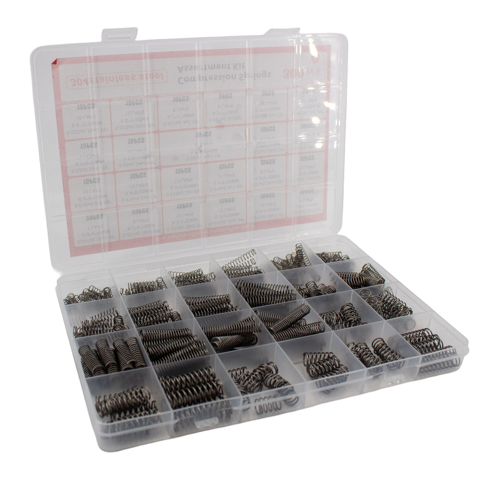 Dieses 300-teilige Edelstahl Druckfeder Sortiment enthält eine große Auswahl an hochwertigen Federn aus 304 Edelstahl.