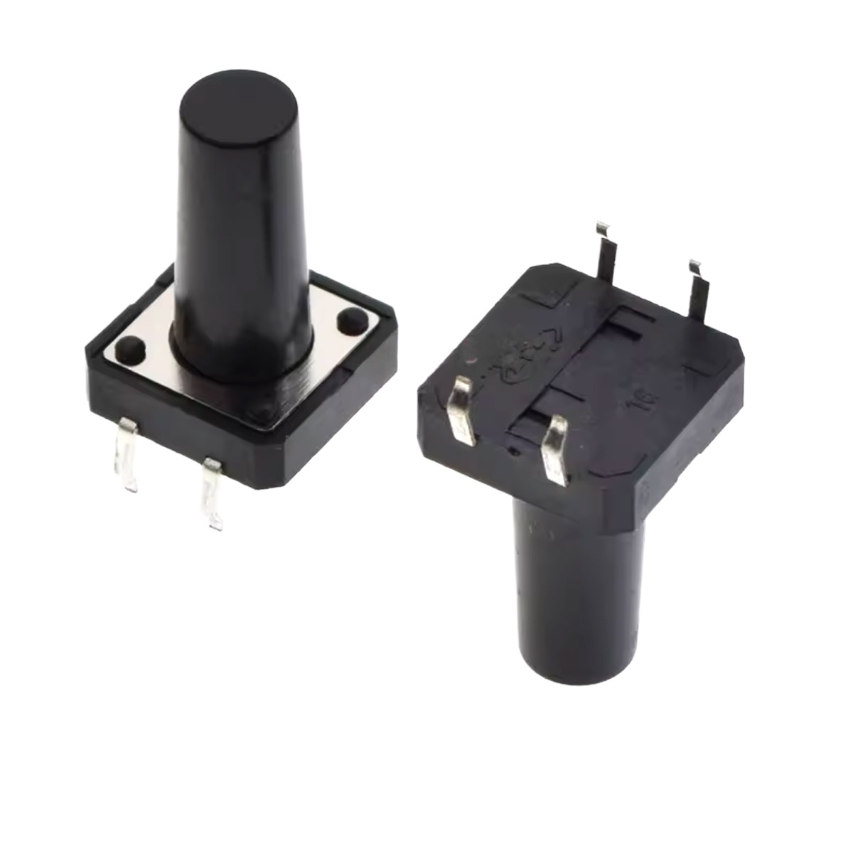 Diese Microtaster im 12x12mm-Gehäuse sind Standardkomponenten für elektronische Schaltungen. Die THT-Anschlüsse passen ins 2,54mm-Raster und lassen sich direkt in Breadboards stecken oder auf Lochrasterplatinen verlöten.