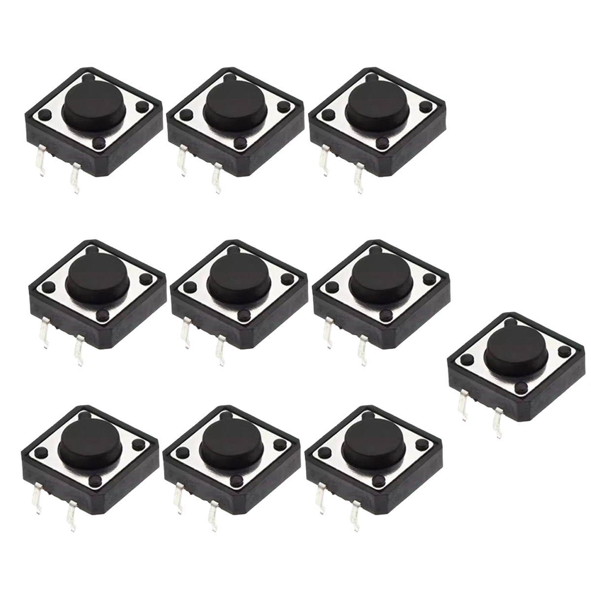 Sie erhalten 10 Taster – praktisch für mehrere Projekte oder als Reserve. Die Taster sind nicht für hohe Schaltströme ausgelegt; für Lasten sollten sie ein Relais oder einen Transistor ansteuern, nicht direkt schalten.
