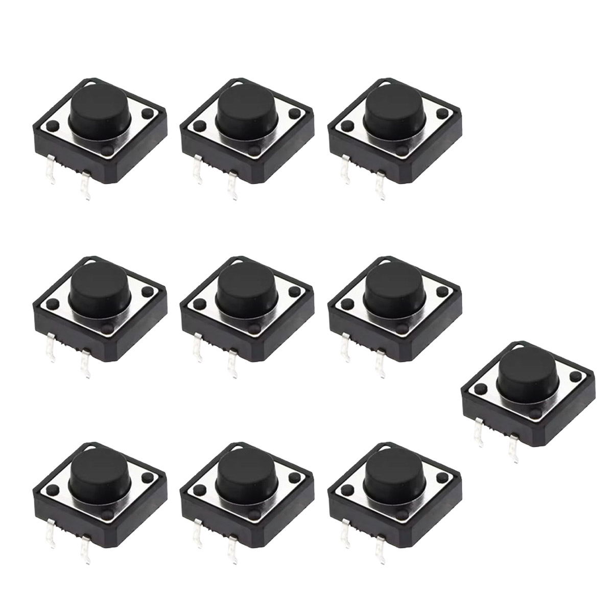 Diese Mikrotaster im 12x12mm-Format sind Standard-Bauteile für elektronische Bastelprojekte und Prototyping. Die Through-Hole-Bauweise (THT) mit vier Anschlusspins ermöglicht eine stabile mechanische und elektrische Verbindung zur Platine – egal ob Lochraster oder selbst geätzte PCB.