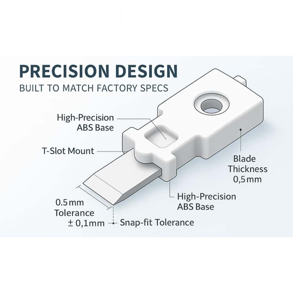 Die Klingen bestehen aus gehärtetem Edelstahl mit industrieller Präzisionsfertigung und bieten eine hohe Verschleißfestigkeit sowie eine lange Lebensdauer. Die passgenaue Konstruktion entspricht den Originaltoleranzen und ermöglicht eine einfache und schnelle Installation ohne zusätzliche Anpassungen.