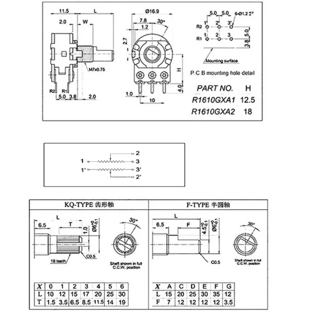 Dokumente & Downloads für 5x WH148 Stereo Potentiometer 10k 6-Pin Dual Linear