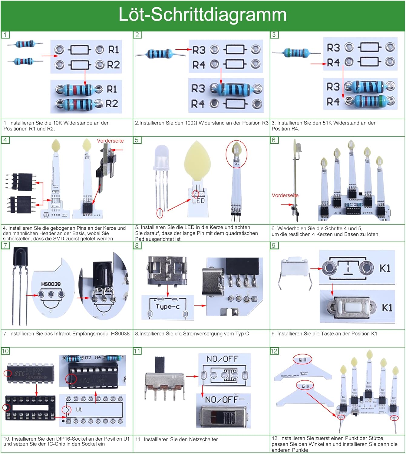 Es eignet sich hervorragend zum Erlernen grundlegender Elektronikkenntnisse, zum Üben von Löttechniken oder einfach als kreatives DIY-Geschenk für Familie und Freunde.