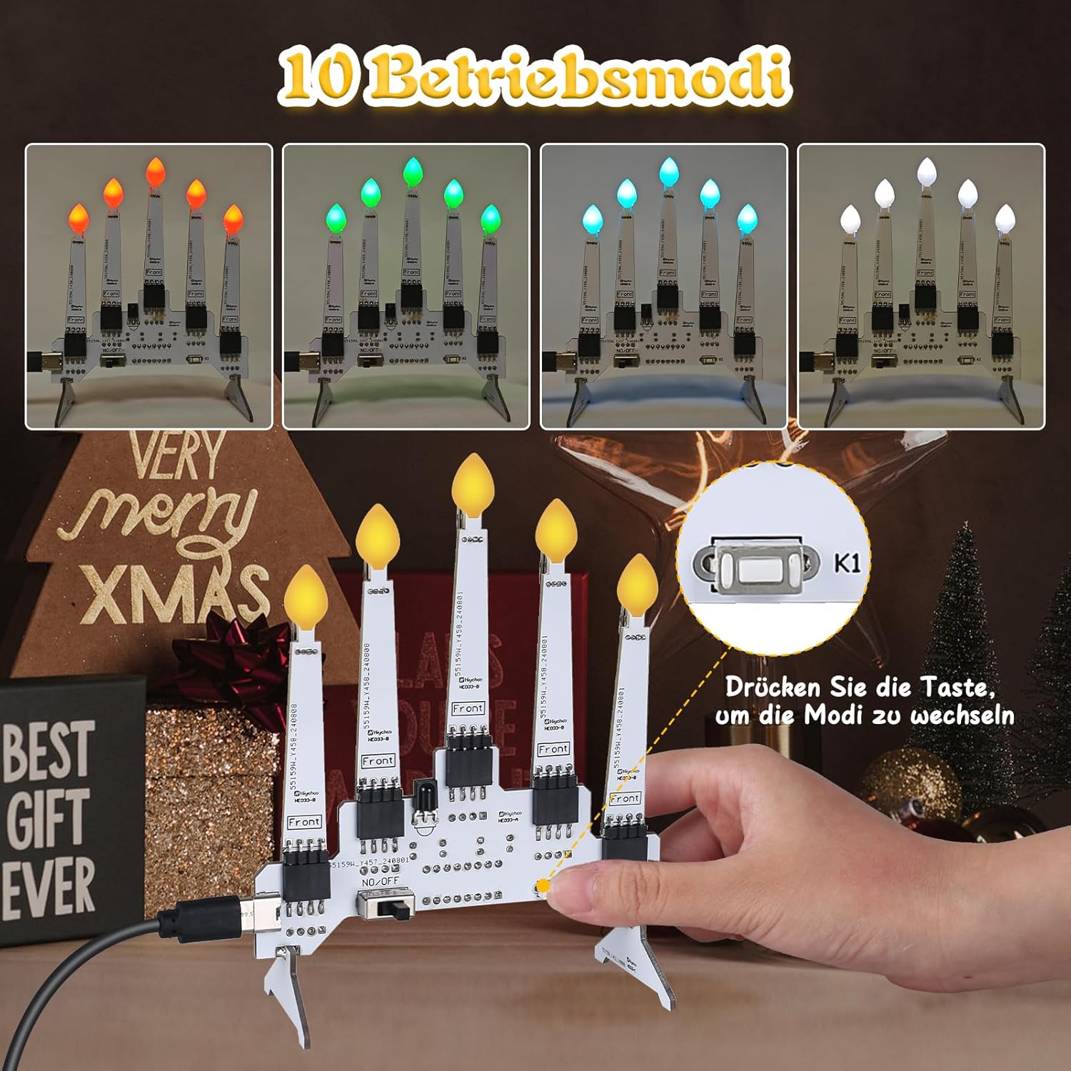 Das DIY Candle Lights Soldering Kit ist ein faszinierendes Elektronikprojekt, das fünf LED-Kerzen und einen Kerzenständer zu einer stimmungsvollen Lichtdekoration kombiniert.