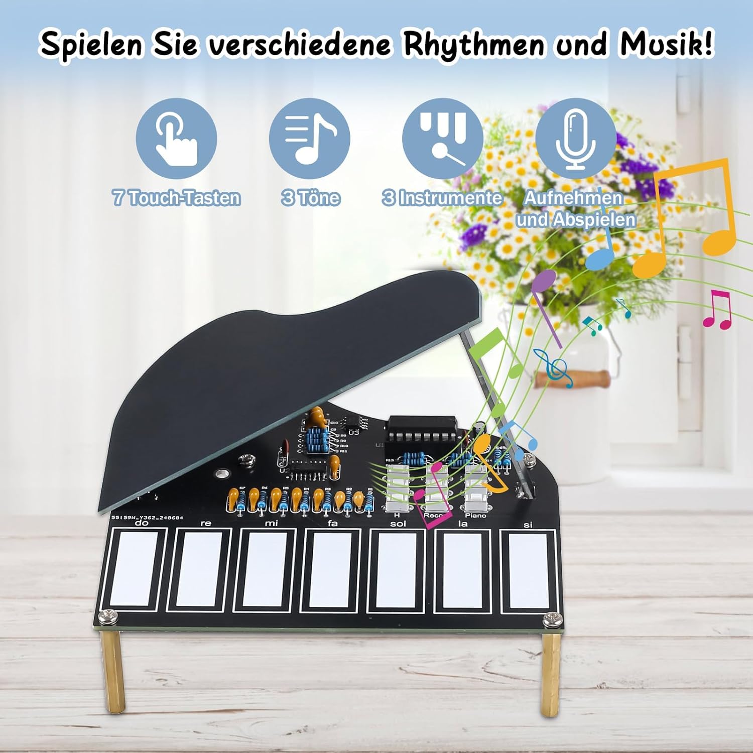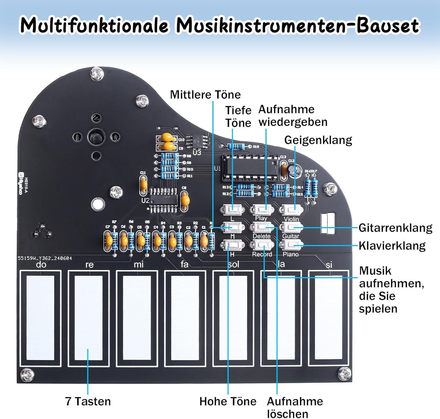 Die intuitive Touchsteuerung und der klare Sound machen diesen Bausatz zu einem einzigartigen Projekt für Schüler, Studierende, Bastler und Familien.