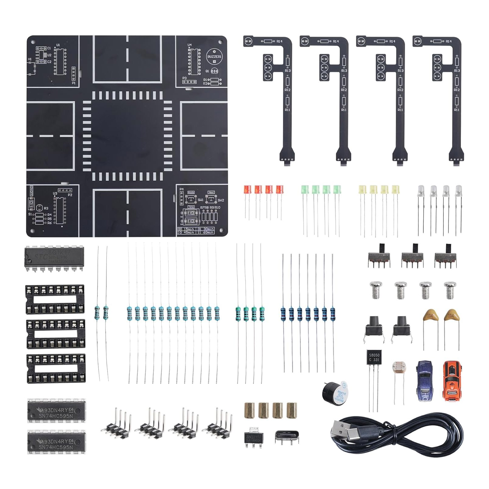 Der DIY LED Ampel Simulator Lötbausatz bietet Ihnen eine anschauliche und praxisnahe Möglichkeit, grundlegende Elektronik und Verkehrslogik zu erlernen. Das Set simuliert eine realistische Straßenkreuzung mit roten, gelben und grünen LEDs, die typische Ampelphasen darstellen.