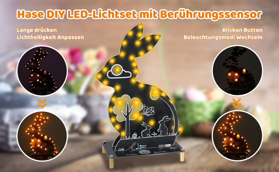 - 1x Bausatz Osterhase Nachtlicht mit Touch Control zum Löten