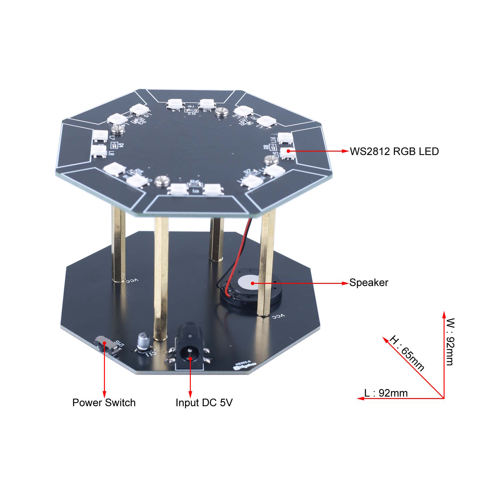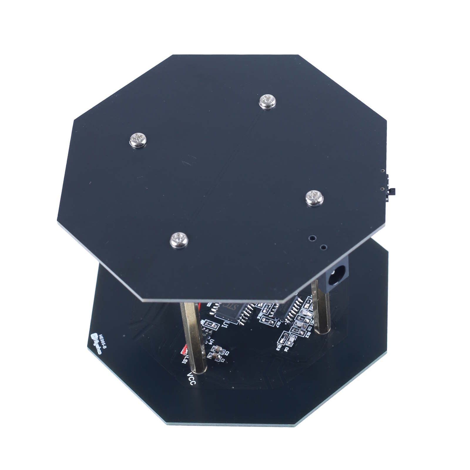 - Komponenten: 2 Platinen, 4 Kupfersäulen, 8 Schrauben, elektronische Bauteile