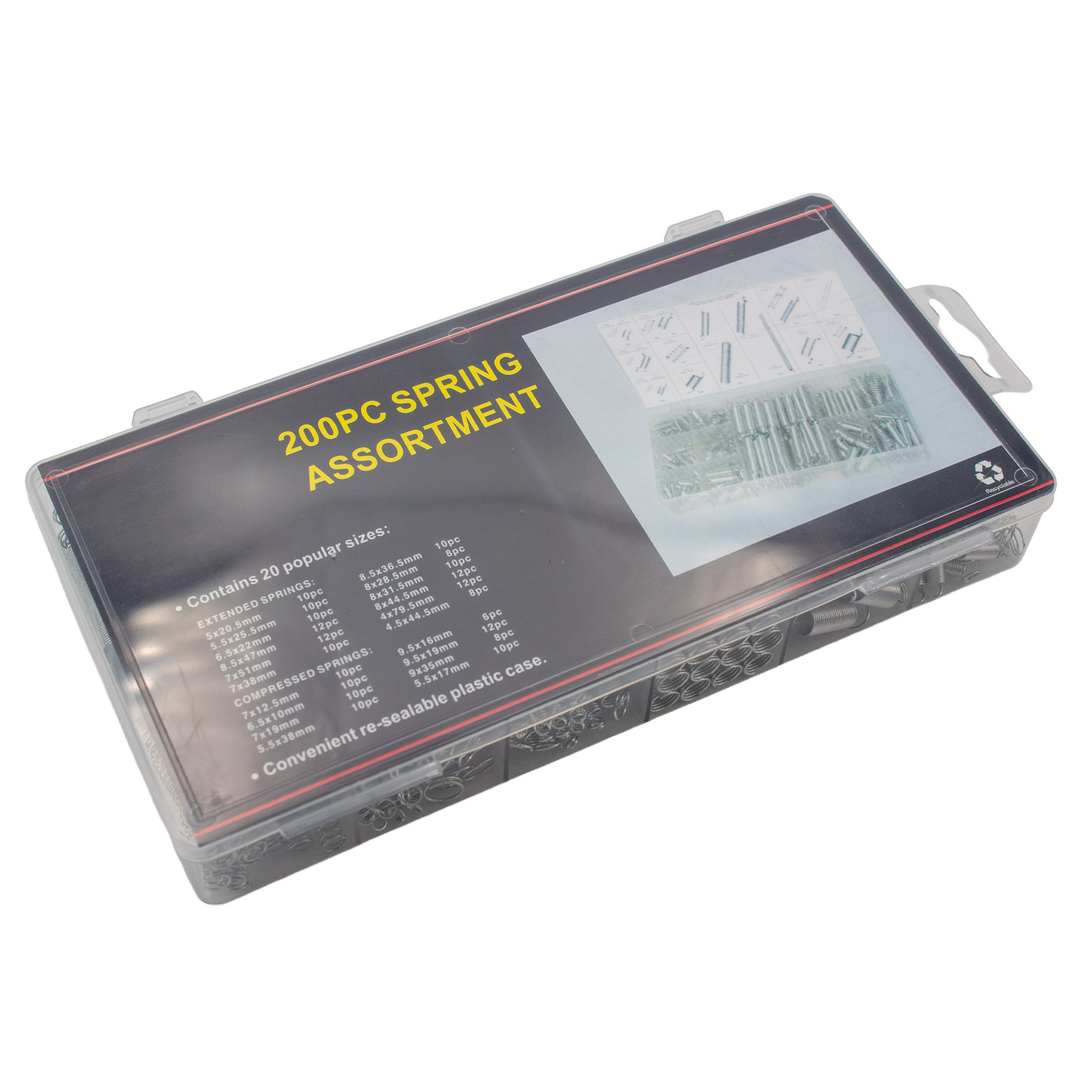 Dieses 200-teilige Edelstahl-Feder Sortiment bietet eine umfassende Auswahl an Druckfedern und Zugfedern in 20 unterschiedlichen Größen.