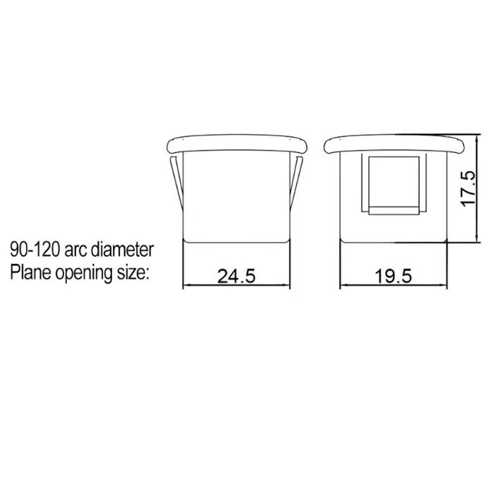 - Einbaumaße (Frontplatte): 22,5 mm × 20 mm