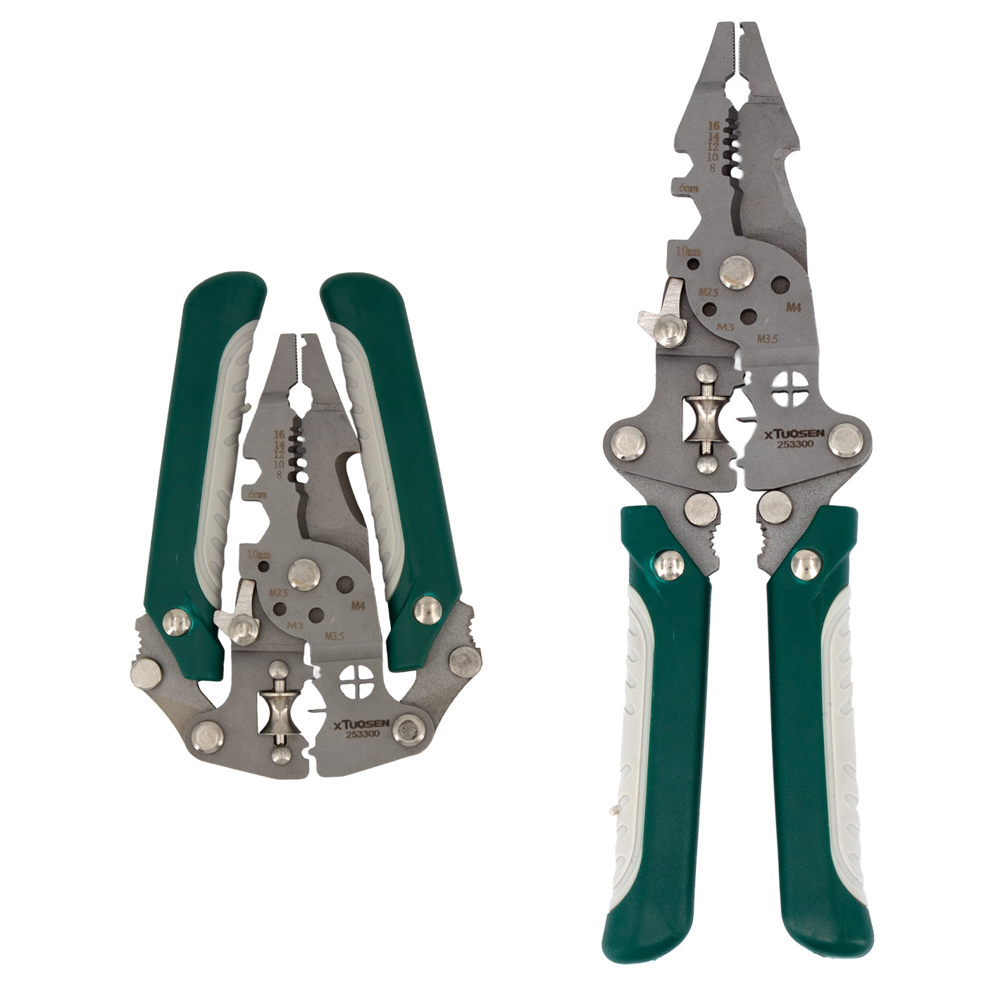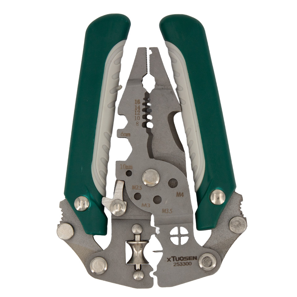 Die präzise gefertigten Schneid- und Abisolierklingen ermöglichen ein müheloses Arbeiten an unterschiedlichsten Kabelquerschnitten. Neben dem Abisolieren und Schneiden bietet das Multifunktionswerkzeug weitere nützliche Funktionen wie Crimpen, Festhalten, Klemmen, Schneiden von Nebenleitungen (Branch Lines) und mehr.