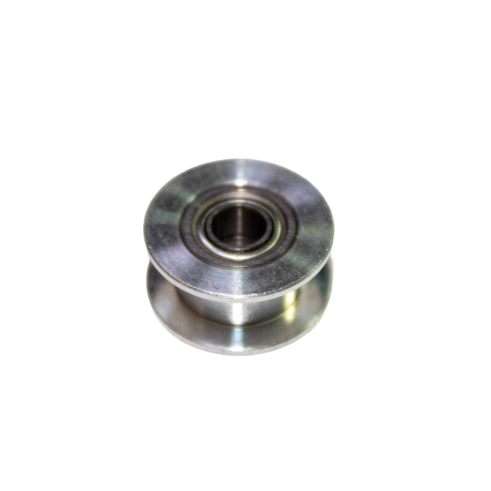 Flachriemenscheibe mit 5mm Bohrung passend für GT2 Zahnriemen. Eignet sich ideal als Umlenkrolle für die Achse eines 3D-Druckers.