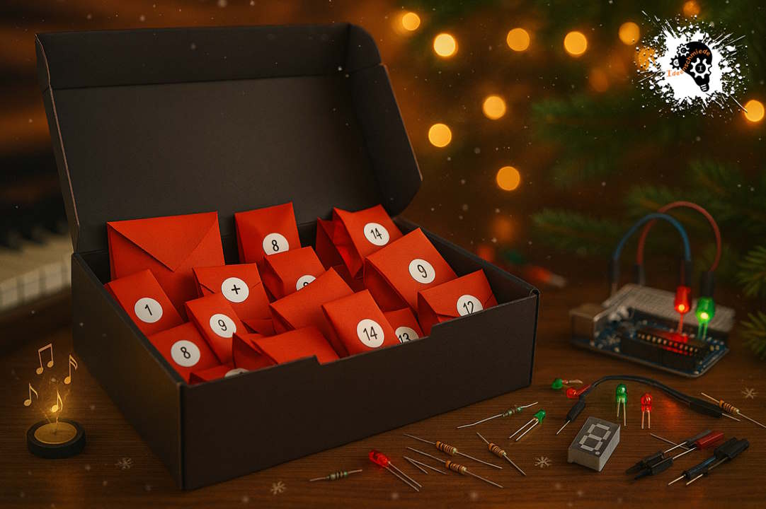 Entdecke die Welt der Elektronik – Schritt für Schritt! Mit dem Mikrocontrolling Adventskalender wartet hinter jedem Türchen ein neues Mini-Projekt, spannende Bauteile und leicht verständliche Anleitungen. Baue eigene Schaltungen, programmiere deinen Mikrocontroller und lass LEDs, Sensoren & Co. genau so reagieren, wie du es möchtest.