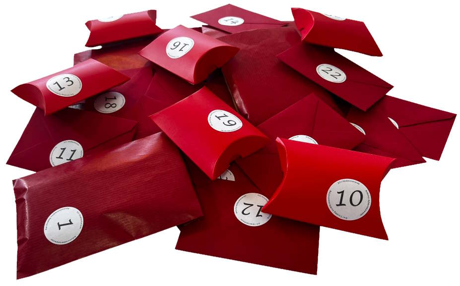 - 1x Adventskalender mit 24 Türchen in schwarzer Geschenkbox