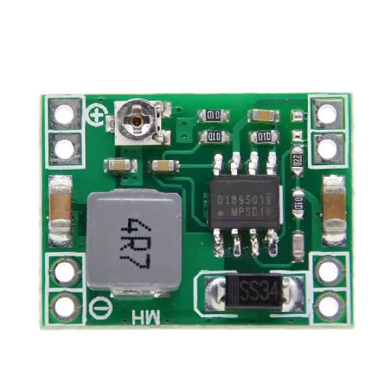 Dieser Mini Spannungsregler verwandelt eine vorhandene hohe Gleichspannung nahezu verlustfrei in eine kleinere Gleichspannung um. Mit Hilfe dieses Moduls können Sie z. B. einen 5V Arduino mit einem 12V Netzteil betreiben, oder eine 5V Spannung auf einen 3V Sensor herunterregeln.
