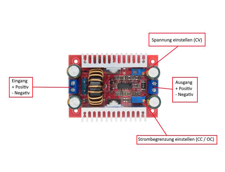 Mobiles Netzteil für Elektronikprojekte: Verwenden Sie den Step-Up Spannungswandler, um ein mobiles Netzteil für Ihre DIY-Elektronikprojekte zu schaffen. Eingangsseitig mit 12V betrieben, können Sie die Ausgangsspannung flexibel zwischen 12-50V einstellen, um verschiedene Komponenten mit der benötigten Leistung zu versorgen.