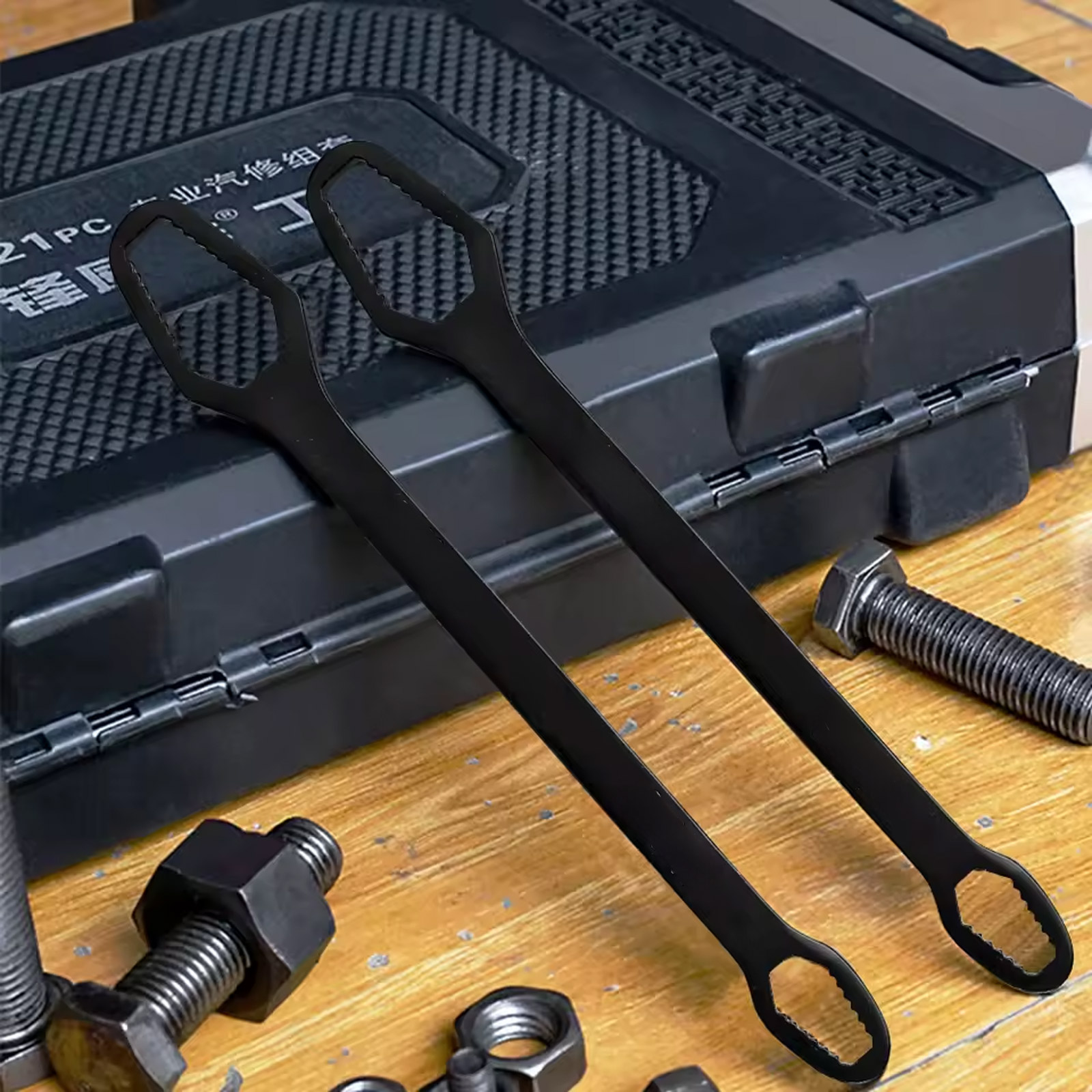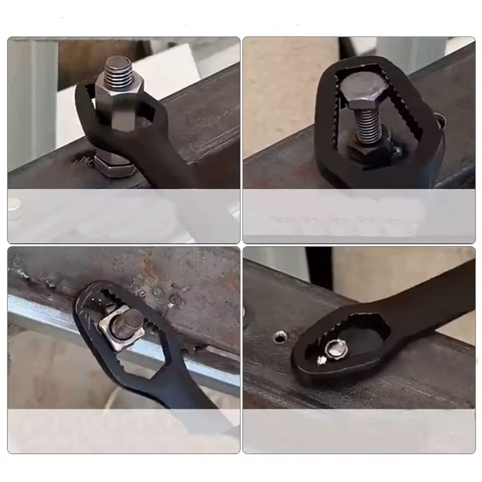 Das Doppelkopf-Design deckt einen großen Bereich von 3 bis 17 mm ab und ersetzt gleich mehrere herkömmliche Gabel- oder Ringschlüssel. Mit seiner kompakten Länge von 145 mm eignet sich der Schlüssel perfekt für enge oder schwer zugängliche Stellen.