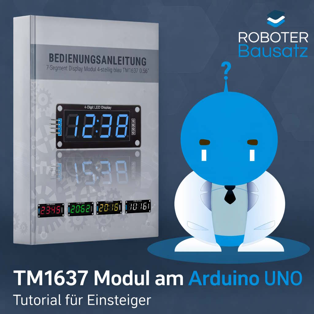 Der TM1637-Chip übernimmt intern die Multiplex-Ansteuerung der Segmente sowie die Helligkeitssteuerung des Displays. Der Arduino sendet lediglich die darzustellenden Zahlen oder Symbole, wodurch der benötigte Code sehr kompakt bleibt.